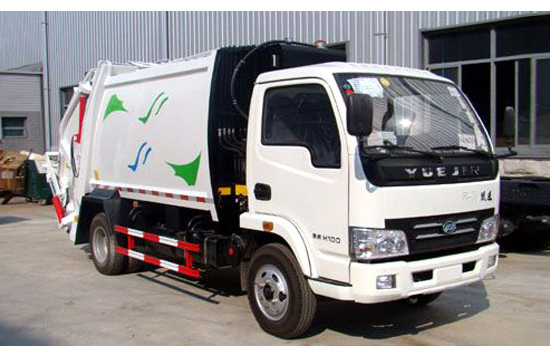 南京跃进4吨压缩式垃圾车上装配置:有效压缩容积6方,可装4吨生活垃圾,压缩倍率3-4倍,压缩后生活垃圾密度从0.36变为0.9以上,带污水收集箱,新款平板式箱体更美观,尾部带密封橡胶垫,可防污水滴漏二次污染。尾部可带翻转斗或挂桶装置,可选装PLC一键操控系统,驾驶室和尾部双操控机构。