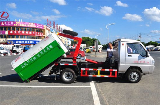 东风小型勾臂式垃圾车配置:厢容积3立方,轴距2.8米,锡柴80马力、四达68马力柴油机,600轮胎。 勾臂式垃圾车一车配多个垃圾箱,机动性强、效率高、降低运输费用。液压系统通过发动机取力,不需另配起重设置,节约成本;带自卸功能,倾卸垃圾方便。勾臂式垃圾车是我们销售最好的车型,主要用于市政环卫收集、运 输城市各种垃圾,尤其适用于收集、运输小区、居委会、城市街道的生活垃圾。