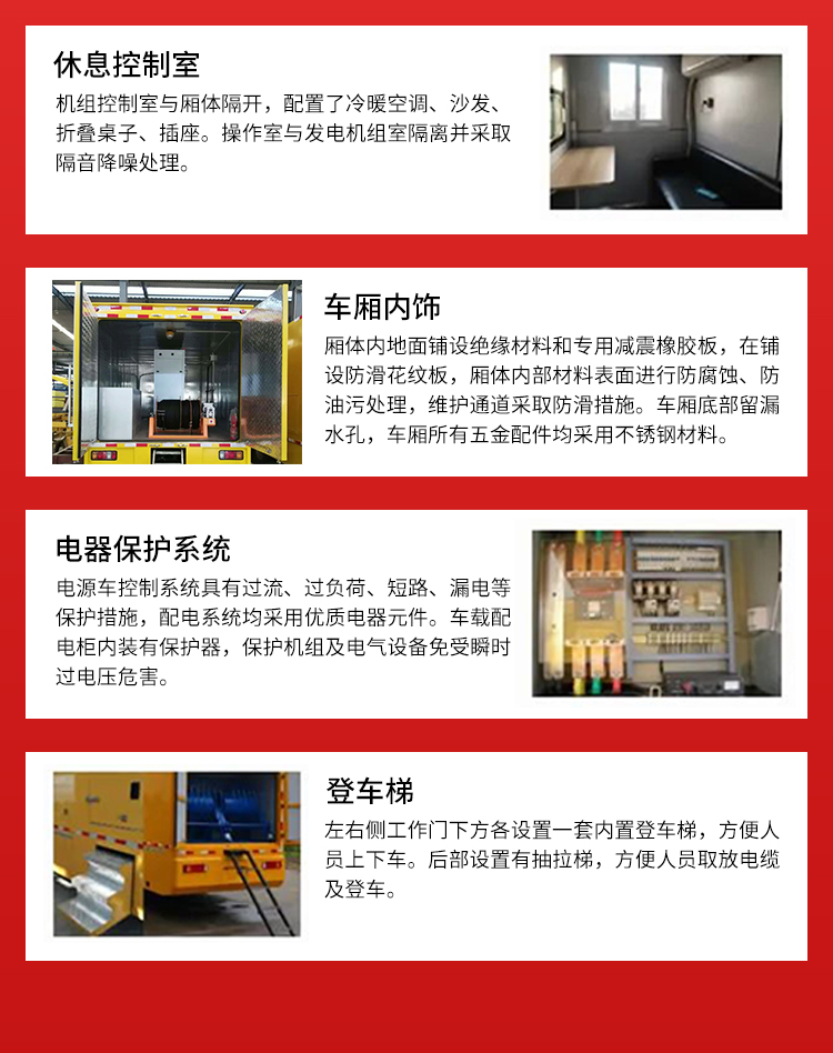 | 整车说明: | 1.该车厢内装有发电机组,电缆绞盘,液压(机械)支腿动力电缆,照明系统等设施,主要用于处理突发事件的应急抢险供电;2.车厢顶部封闭不可开启;3.防护材料:侧后防护由车身结构代替,后防护下边缘离地高:490mm;4.ABS系统型号为XH-KQ4S4M-E01,生产企业为广州市西合汽车电子装备有限公司;型号为CM4XL-4S/4M,生产企业为广州瑞立科密汽车电子股份有限公司;型号为VIE ABS-Ⅱ,生产企业为浙江万安科技股份有限公司;5.随底盘选装驾驶室. | ||