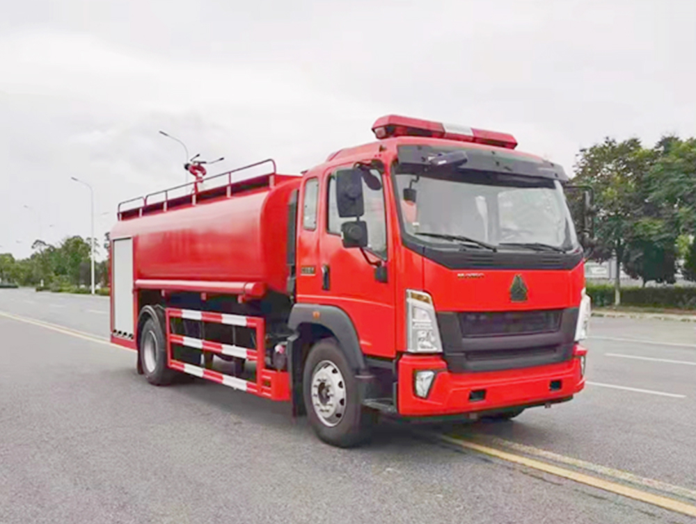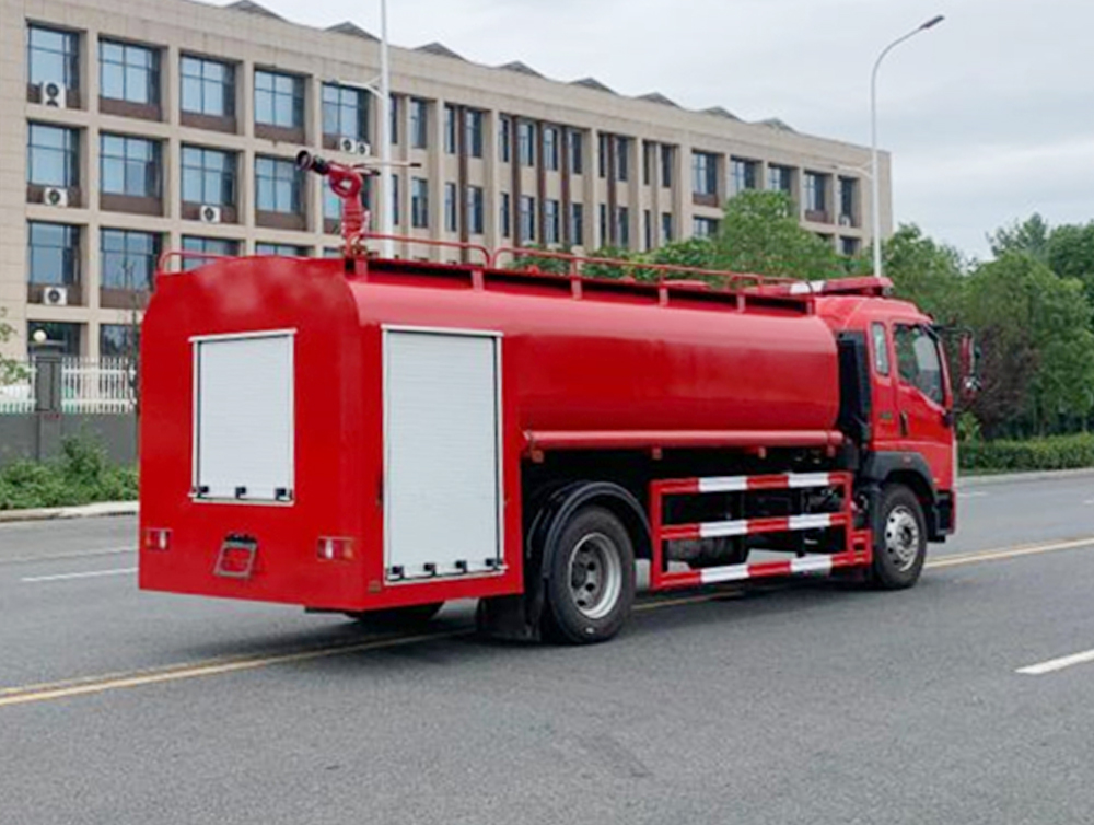 平头一排半金属封闭式驾驶室,全景曲面式挡风玻璃。选装新型前面罩,前保险杠,前组合灯具,车门窗,前围下面罩;罐体材质采用优质碳钢材料(Q23**),焊接式结构,内设纵,横防荡板,板材厚度4 mm,碳钢罐经高科技防腐处理(可选装不锈钢罐)经久耐用;器材厢门采用铝合金帘子门,滚筒、滑槽导向,启闭轻便、噪音小;门止限位装置双重固定,安全性能可靠;除原车设备外,驾驶室内加装有取力器控制指示灯、100W警报器、LED警灯、标志灯、示廓灯开关及后部照明灯等。 |