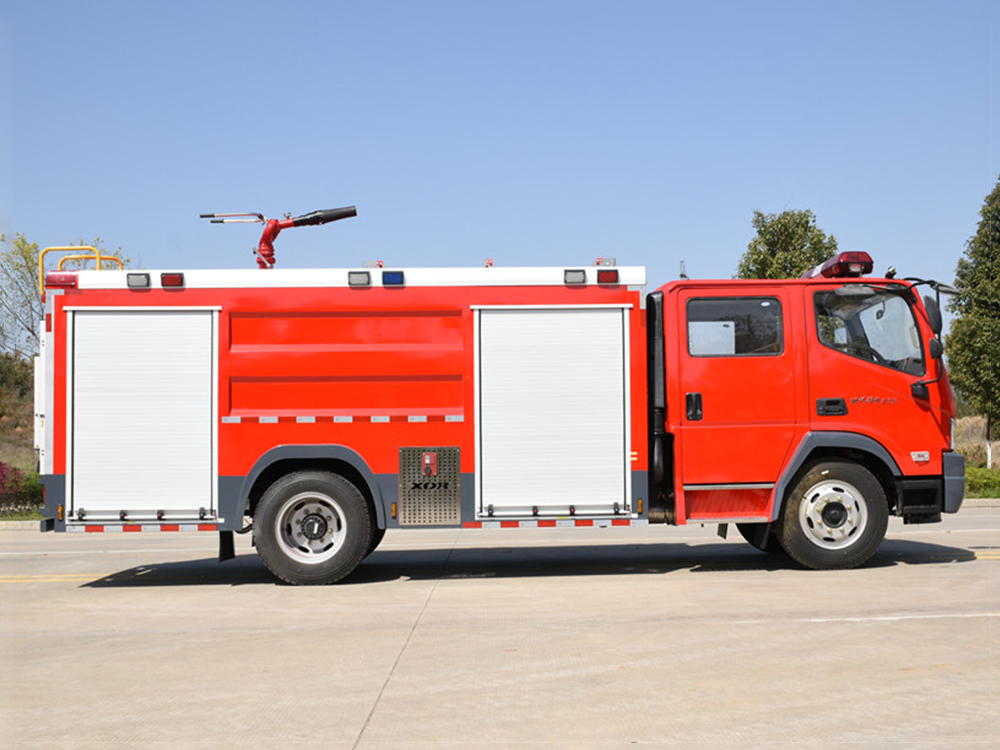 驾驶室顶部前端为长排100瓦** 报器及** 灯,车身后配有24V/60W火场照明灯一只,车辆两侧上方各配有红蓝相配的爆闪灯,下方安装安全标志灯,乘员室、器材箱、 泵房内均装有照明灯,回转**开关、通讯设备预备接口。 |