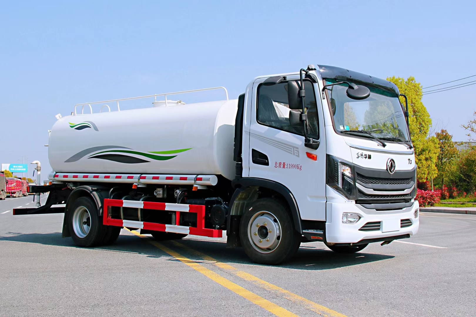 | 整车说明: | 1、仅选用3800mm轴距改装。2、罐体有效容积为7.53立方米。3、罐体尺寸(罐体长×长轴×短轴)对应关系为(mm):4200×2000×1290。4、防护材料:Q235B碳钢,连接方式:左右侧面防护与后下部防护均采用焊接连接,后部防护断面尺寸(mm):120×60,后部防护离地高度(mm):470。5、ABS型号/生产厂家:J ABS/焦作博瑞克控制技术有限公司,3631010-C2000/东科克诺尔商用车制动系统(十堰)有限公司。6、专用装置:罐体,主要用于路面洒水及园林绿化。 | ||