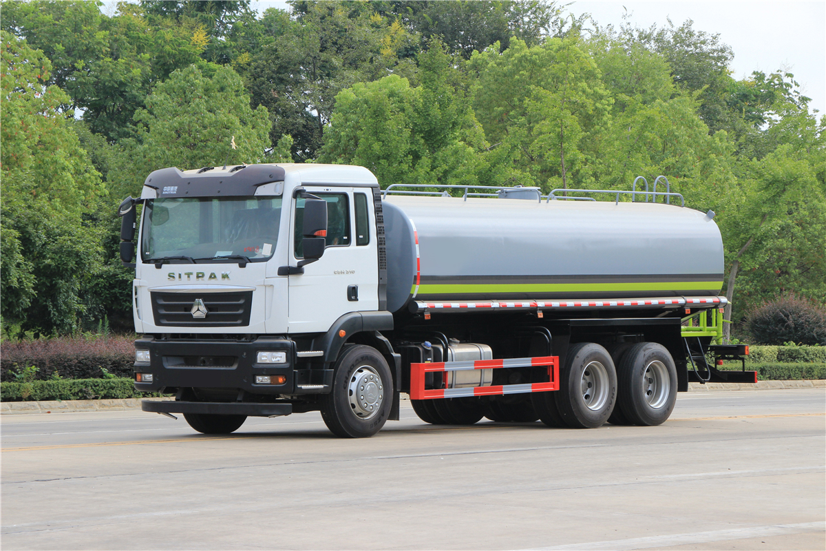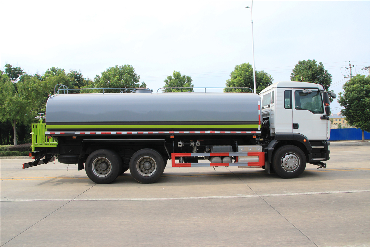 | 整车说明: | 1.专用装置:洒水泵,喷嘴等洒水装置,主要用于路面洒水及园林绿化;2.品名:水;密度:1000千克/立方米;有效容积:14.68立方米;罐体外形尺寸(长×长轴×短轴)(mm):6100×2300×1500;采用4275+1400,4300+1350,4575+1400mm轴距底盘改装,整车长/轴距/后悬对应(mm)关系为:10250/4275+1400/3125,10250/4300+1350/3150,10250/4575+1400/2825;3.防护材料:Q235A碳钢,连接方式:左右侧面及后下部防护均采用焊接连接,后部防护断面尺寸(mm):160×50,后部防护离地高度(mm):490;4.随底盘选装驾驶室;5.ABS系统控制器生产企业/型号为威伯科(上海)管理有限公司/4460046300;选装EBS,EBS系统控制器生产企业/型号为威伯科(上海)管理有限公司/EBS3.选装不同的后平台样式. | ||
