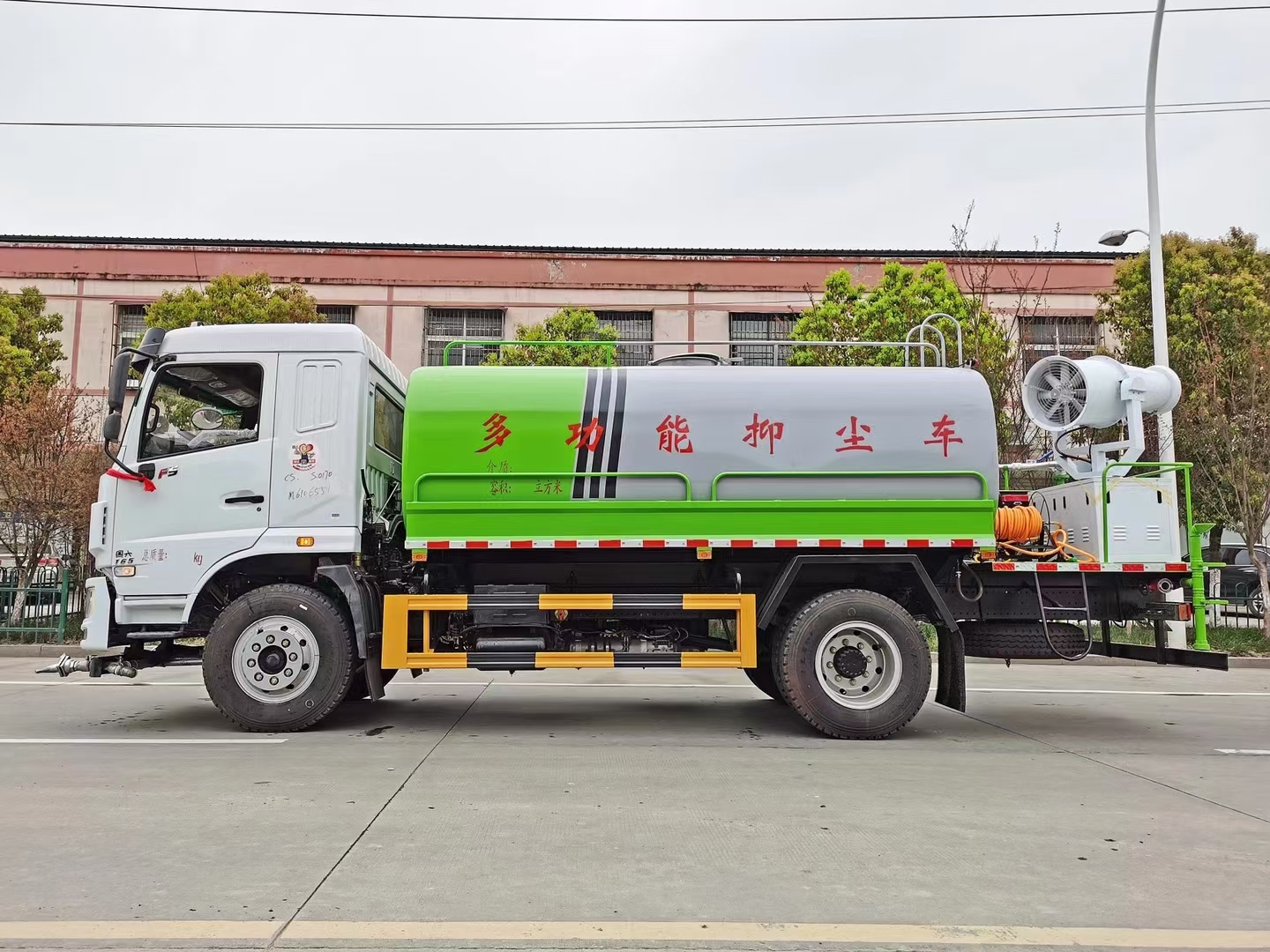 | 整车说明: | 专用装置为抑尘雾炮,用于城市抑尘.整车长/轴距/前悬/后悬对应关系为(mm):7760/3950/1250/2560;7870/3950/1450/2470;8650/4500/1250/2900;8730/4500/1450/2780;7870/4200/1250/2420;8730/4700/1250/2780;侧面防护材料:Q235A碳钢.连接方式:左右侧面采用螺栓连接.后防护装置材料:Q235B碳钢.连接方式:采用螺栓连接.后部防护断面尺寸(mm):120×50,后部防护离地高度(mm):490.ABS型号及生产厂家为:3631010-C2000/东科克诺尔商用车制动系统(十堰)有限公司,J ABS/焦作博瑞克控制技术有限公司.随底盘选装驾驶室.选用下置尾气处理器。 | ||