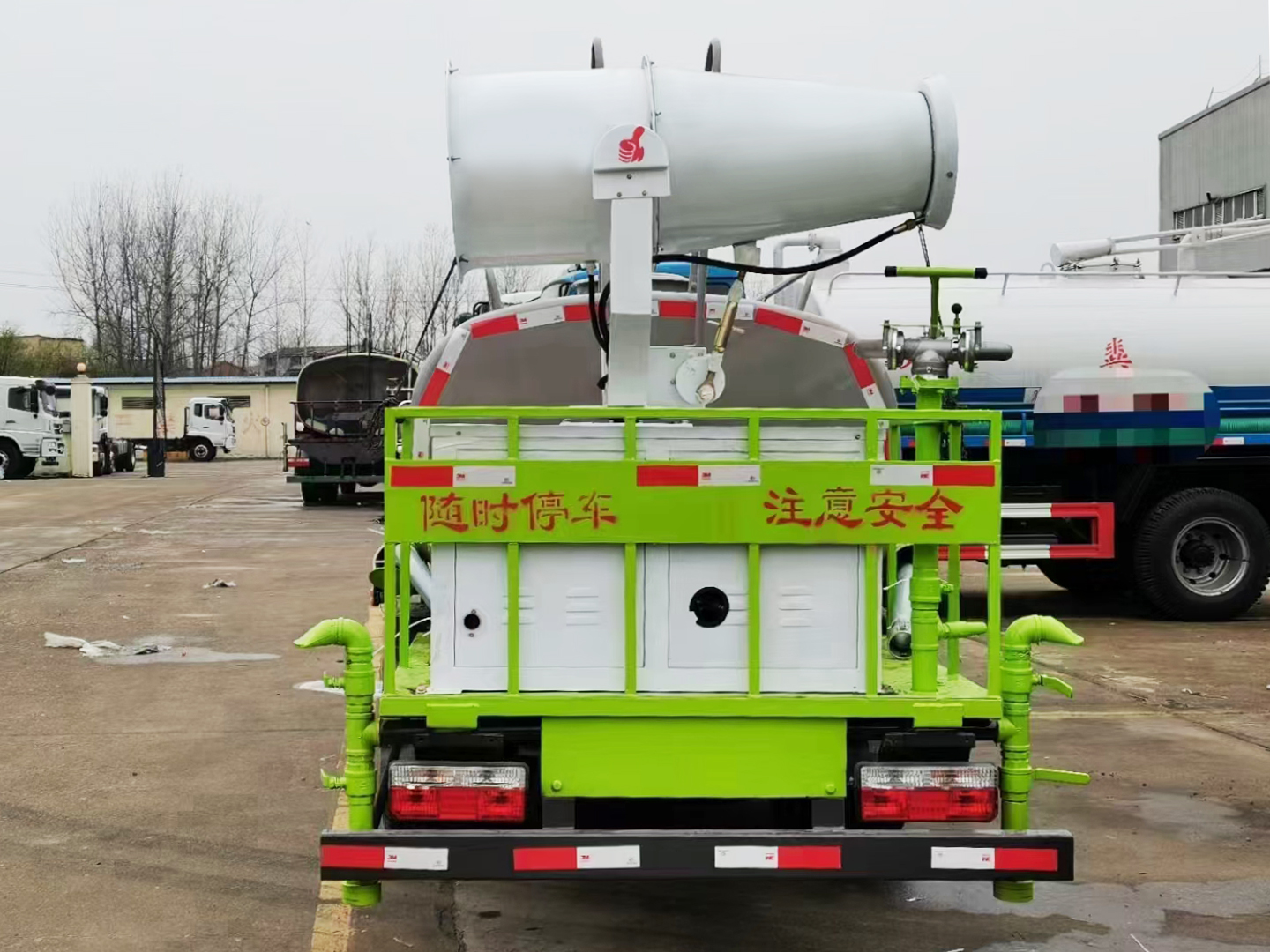 | 整车说明: | 专用装置为喷雾装置,用于城市抑尘.整车长/轴距/后悬对应关系为(mm):5680/2800/1690;5800/3000/1610,防护材料:Q235B碳钢,连接方式:左右侧面防护采用螺栓连接,后下部防护采用螺栓连接,后部防护断面尺寸(mm):100×50,后部防护离地高度(mm):370.ABS型号/厂家:APG3550500A/浙江亚太机电股份有限公司。选装外观样式。 | ||