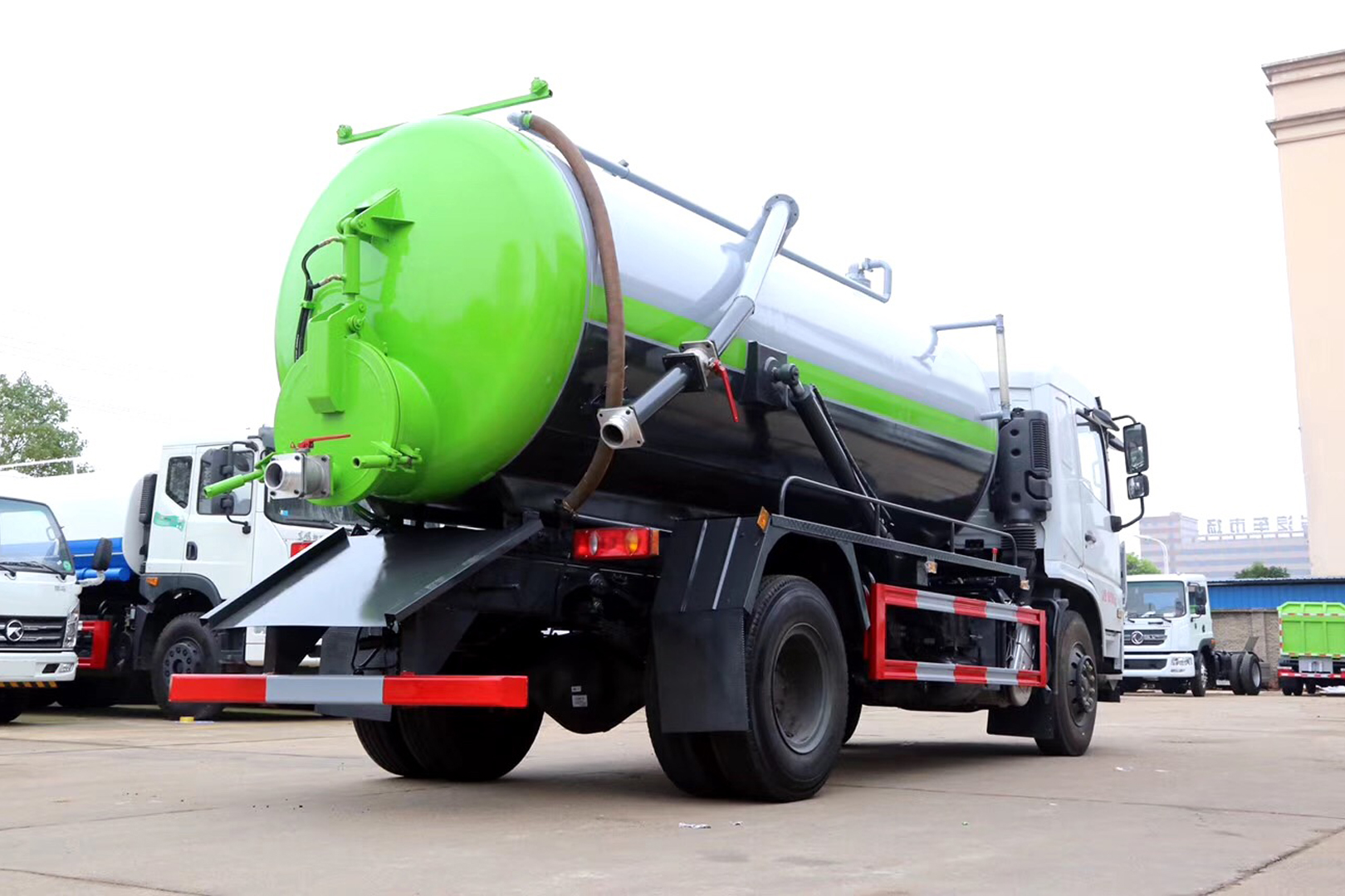 | 整车说明: | 该车主要用于城乡下水道的清理,主要装置为吸污罐及吸污泵.运输介质为:液态污染物,密度:800千克/立方米.罐体有效容积10.76立方米.罐体外形尺寸(直段长×直径)(mm)5000×1800,轴距/后悬对应关系:3950/2180,4500/2210,4700/2210.防护材料:Q235碳钢,连接方式:左右侧面及后下部防护均采用螺栓连接,后部防护装置断面尺寸(宽×高)50×125(mm),后部防护离地高度(mm):490(mm),ABS的型号可以为1.ABS-E 4S/4M,生产厂为威伯科汽车控制系统(中国)有限公司;2.3631010-C2000,生产厂为东科克诺尔商用车制动系统(十堰)有限公司,随底盘选装驾驶室 | ||