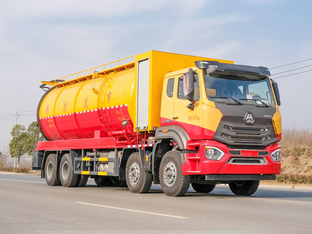 | 整车说明: | 1、该车用于清洗吸污,主要专用装置为真空泵和罐体。罐体尺寸为(直段长×直径)(mm):7100×2350,其中罐体前端为清水罐(直段长3100mm);后端为污水罐(直段长4000mm)。两罐独立,且不能同时满载。清洗功能时用清水罐,吸污功能时用污水罐。污水罐有效容积14.74立方米,介质:液态污物,密度:800千克/立方米;清水罐有效容积11.79立方米,介质:水,密度:1000千克/立方米。2、侧、后防护材料均为Q235,焊接。后防护截面尺寸200×50mm,下边缘离地高500mm。选装罐体顶部护栏样式,选装侧面清洗管,选装后罐口液压开启样式,选装后部阀门,选装后部清洗管卷盘样式,后部箭头灯为选装件。3、仅采用轴距(mm):1800+4600+1350,1800+4575+1400。随底盘选装半高顶驾驶室、选装昼间行驶灯、选装油浴式空滤器。ABS系统型号为446 004 6300,生产企业为威伯科汽车控制系统(中国)有限公司。 | ||