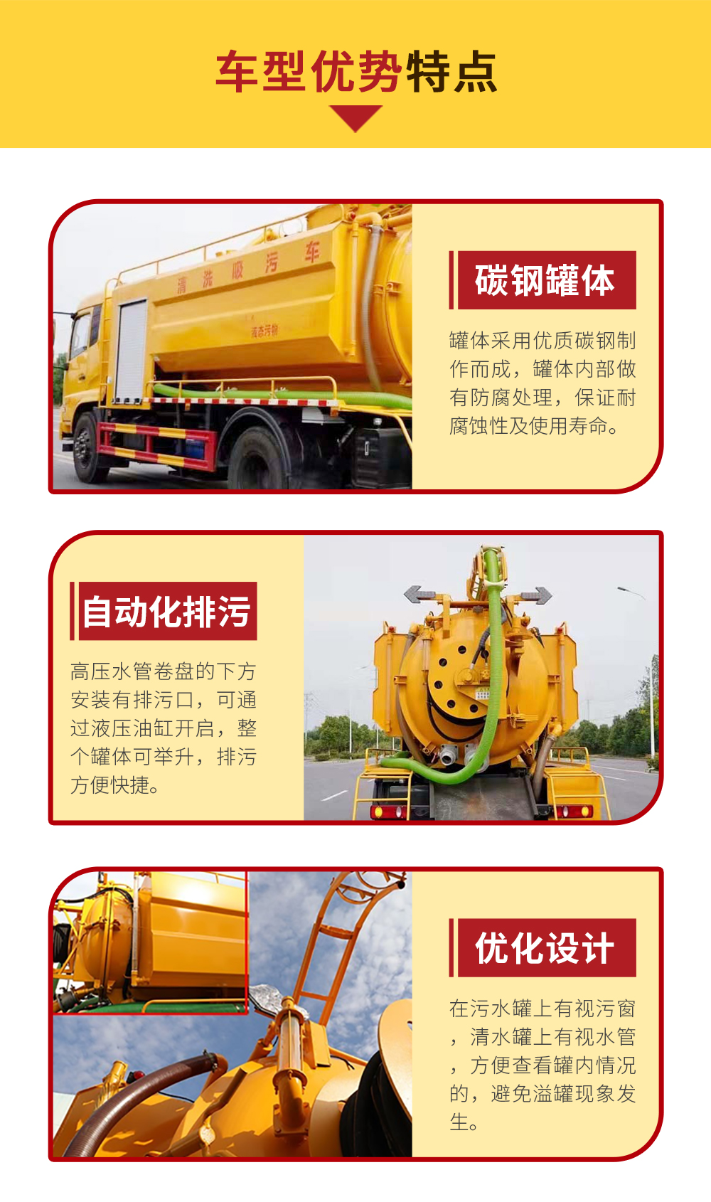 整车说明: 1,罐体有效容积:9.8立方米,罐体外形尺寸(长×宽×高)(mm):4800(前端1500mm为高压水泵)×2440×1500;整车长度/前悬/轴距/后悬/的对应关系为(mm): 7280/1430/3800/2050,7430/1430/3950/2050,7680/1430/4200/2050, 7700/1430/3800/2470,7950/1400/4500/2050,7980/1430/4500/2050,8180/1430/4700/2050,8480/1430/5000/2050,8780/1430/5300/2050,9280/1430/5800/2050;2,侧防护及后下部防护装置均采用Q235A材质,均采用焊接连接,后下部防护尺寸:280×50(mm),离地面高度470mm.3,ABS型号/生产厂家:3631010-C2000/东科克诺尔商用车制动系统(十堰)有限公司,ABS 8/东科克诺尔商用车制动系统(十堰)有限公司, 4460046450/威伯科汽车控制系统(中国)有限公司.该产品是以清洗路面为主的移动环卫车辆,专用装置为高压水泵.随底盘选装驾驶室.选装选装正后部图片.