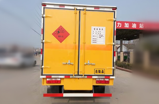 | 整车说明: | 随底盘选装前面罩以及前雾灯,选装右侧箱体不开门,厢体顶部封闭,不可开启:运输品名:黑火药,炸药,电引爆雷管,爆破炸药,烟花爆竹等,类项号:1.1B,1.1D,1.1G,1.2G,1.3G,1.4G 等; 防护材料:Q235A碳钢,连接方式:左右侧面及后下部防护均采用焊接连接,后部防护断面尺寸(mm):100×50,后部防护离地高度(mm):450,采用发动机型号CY4BK551,YC4FA115-50,D28D11-5DA,对应油耗值分别为12.4;12.6;12.6。该车安装带有卫星定位功能的行驶记录仪。仅采用前盘制动器和安装ABS以及前置消声器的底盘。采用子午线轮胎。安装限速装置,限速80km/h。ABS厂家及型号:襄阳东风隆诚机械有限责任公司/ABS/ASR-24V-4S/4M。 | ||