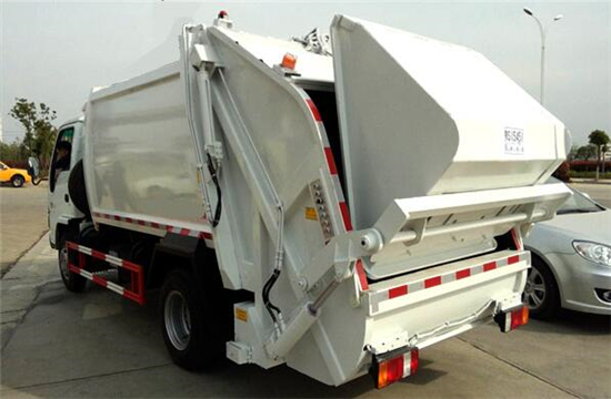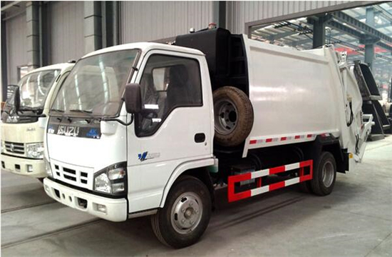 庆铃4吨压缩式垃圾车上装配置:压缩垃圾箱体,改进型外观设计,液压动力,电控操作,方便可靠,容积5-6方,带污水收集箱,保修三万公里。