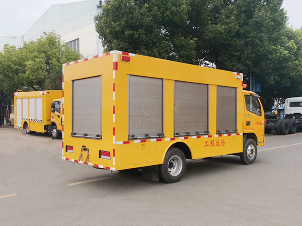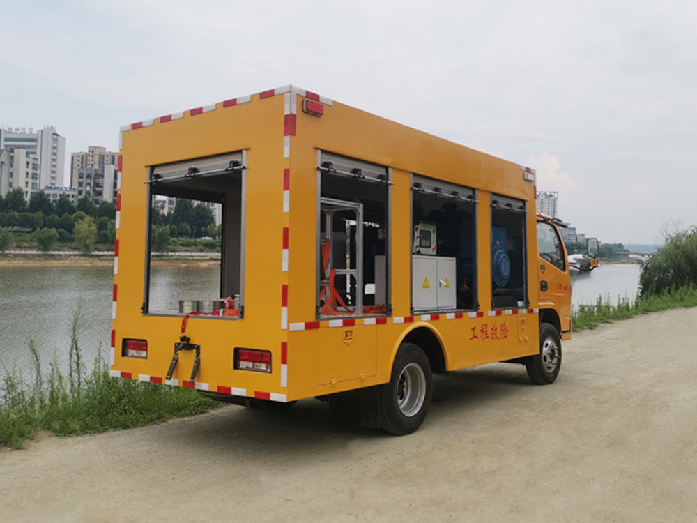多功能抢险车,工程救险车拥有多个抢险功能装备,移动排水,移动发电,移动提供电源,空气动力,排水能力最高可达1500-3000立方每小时,提供的电源可达100-200千瓦,根据用户的需要配备一些抢险工具,在救灾的过程中,只要是抢险需要的工具动力源,该抢修车都能提供。该车专用装置:装有静音车箱,发电机组,电缆卷盘,控制系统等,内部可选装电驱式排水泵或柴油机驱动式水泵或液压水泵,主要用于应急供电,应急救险时抽排污水,带卫星定位的行车记录仪,ABS.